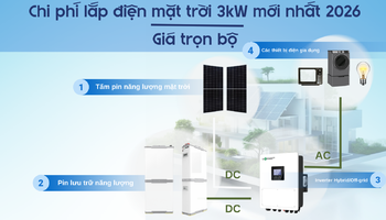 Chi phí lắp điện mặt trời 3kW mới nhất 2026 – Giá trọn bộNgày cập nhật: 11-03-2026 Chi phí lắp điện mặt trời 3kW bao nhiêu? Xem bảng giá combo 3kW không lưu trữ, có lưu trữ và độc lập mới nhất 2026. Xem thêm