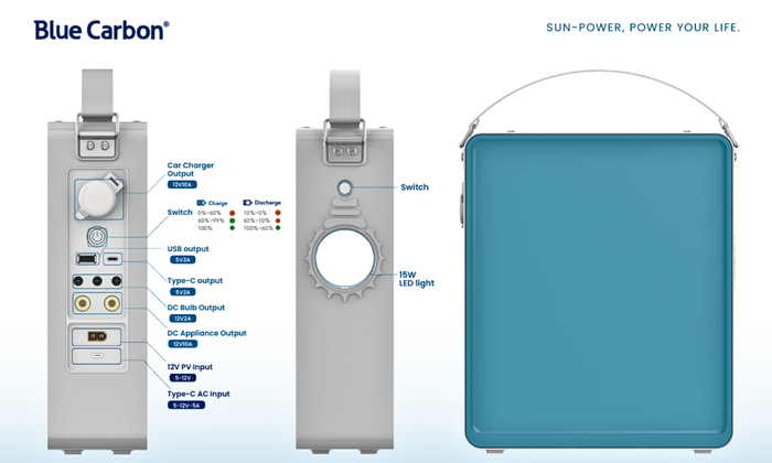 Sun Power 1.0 (model BCT-SH1.0) là bộ lưu điện mặt trời BCT-SH1.0 500w Blue Carbon đời mới nhất. Với thiết kế gọn nhẹ, thẩm mỹ, có tích hợp pin LiFePO₄. Đây là bộ lưu điện cực kỳ phù hợp cho nhu cầu chiếu sáng khi đi du lịch, cắm trại hoặc dùng làm điện dự phòng gia đình. Sản phẩm đem lại khả năng cung cấp điện ổn định. An toàn, sạc bằng tấm pin NLMT 12V-60W bền hơn 6000 chu kỳ.