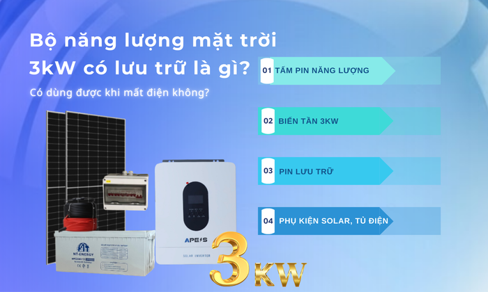 Bộ năng lượng mặt trời 3kW có lưu trữ là gì? Có dùng được khi mất điện không? Tìm hiểu cấu hình và cách hoạt động.