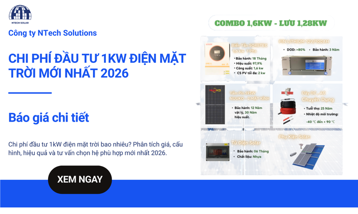 Chi phí đầu tư 1kW điện mặt trời bao nhiêu? Phân tích giá, cấu hình, hiệu quả và tư vấn chọn hệ phù hợp mới nhất 2026.