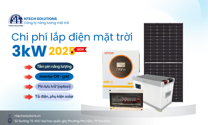 Tìm hiểu chi phí lắp đặt điện năng lượng mặt trời 3kW tại NTech, bảng giá, sản lượng điện tạo ra và thời gian hoàn vốn dưới 4 năm