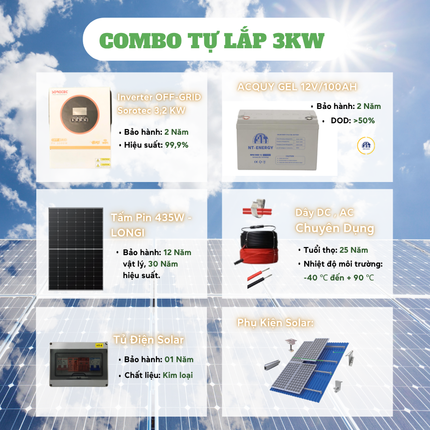 Combo Điện Năng Lượng Mặt Trời 3KW - Hệ Lưu Trữ 2,56KW