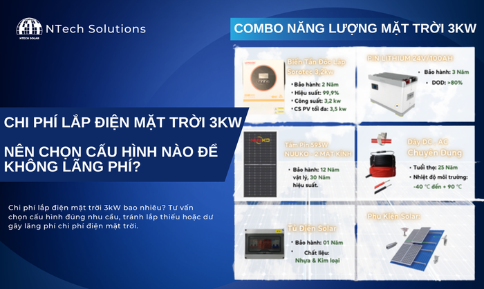 Chi phí lắp điện mặt trời 3kW bao nhiêu? Tư vấn chọn cấu hình đúng nhu cầu, tránh lắp thiếu hoặc dư gây lãng phí chi phí điện mặt trời.