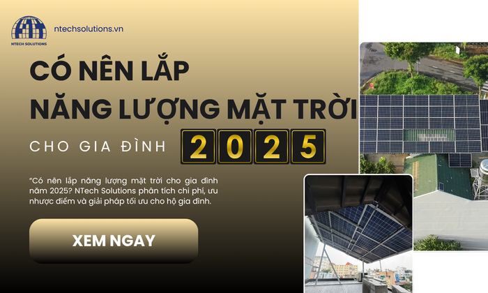 Có nên lắp năng lượng mặt trời cho gia đình năm 2025? NTech Solutions phân tích chi phí, ưu nhược điểm và giải pháp tối ưu cho hộ gia đình.