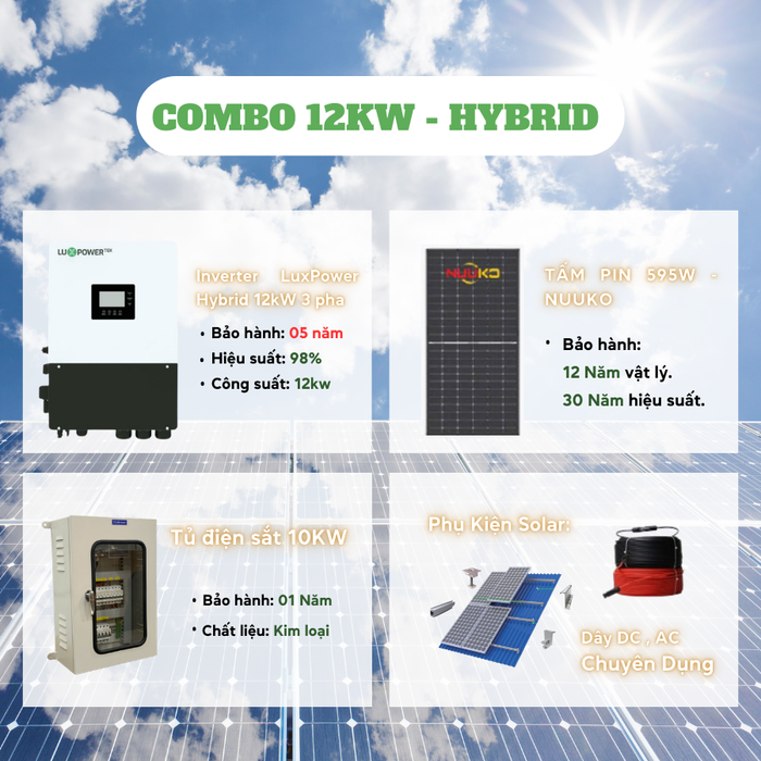 Chi tiết về combo điện năng lượng mặt trời Hybrid LuxPower 12kW 3 pha, mời quý khách xem tiếp bên dưới.