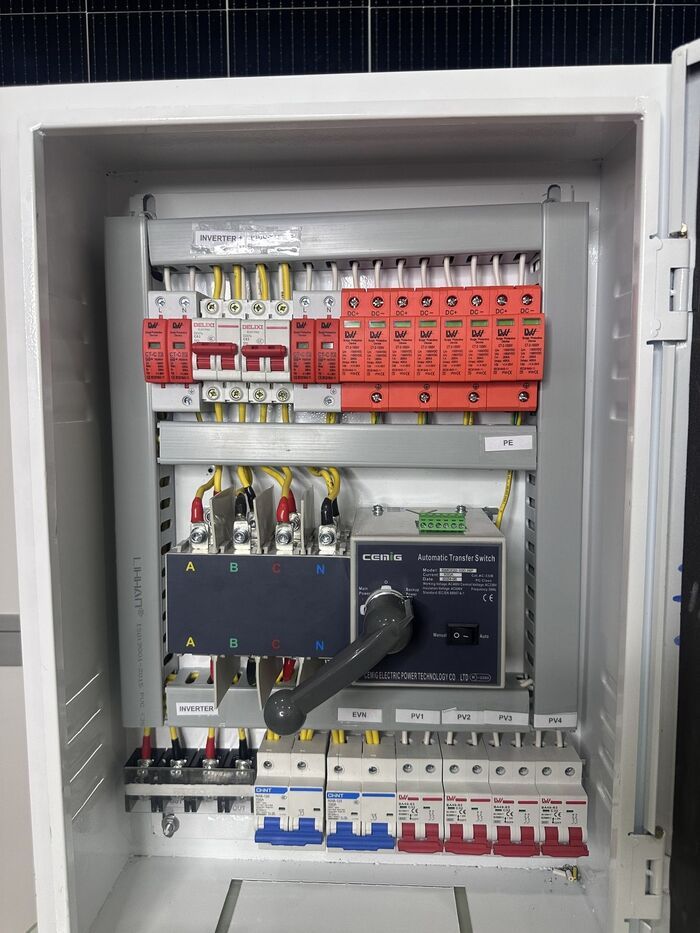 Bộ Tủ Điện 12 kw '- DC chống sét 2 cái - 2 cặp jack MC4 - 1 ATS 1 PHA -1CB DC BÌNH |