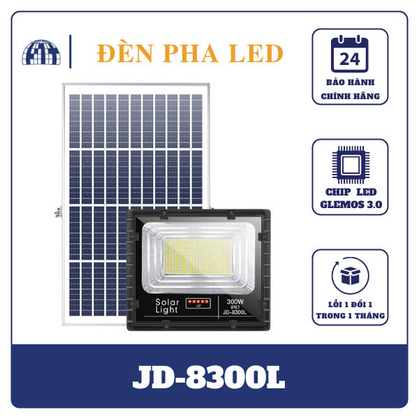 Đèn pha năng lượng mặt trời JD-8300L đạt chuẩn chống nước cao
