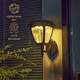 - Nổi bật cùng với kiểu dáng thiết kế độc đáo của mẫu đèn năng lượng mặt trời treo tường này. Lấy ý tưởng từ những chiếc cổ thời xưa nhìn vô cùng sang trọng.