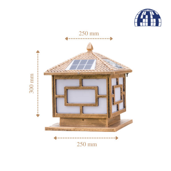 Đèn trụ cổng năng lượng mặt trời Nt250c được thiết kế với 4 mặt giống nhau, hình vuông và phần mái có vân ngói cách điệu. Vừa cổ điển vừa tinh tế tạo sự sang trọng và đẳng cấp cho ngôi nhà của bạn.