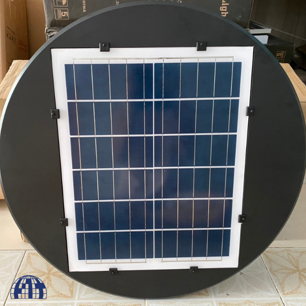Tấm pin năng lượng mặt trời đi kèm được gia công liền mạch với đèn ở phần mặt trên. Nhìn tổng thể thì đèn ufo rất là gọn và đẹp mắt.