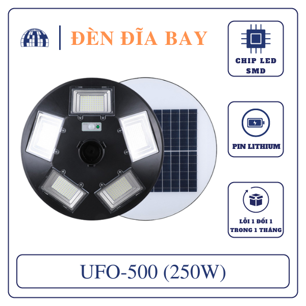 Đèn UFO-500 là mẫu đèn sân vườn năng lượng mặt trời công suất 250W chính hãng Jindian. Với mỗi khoang chứa của bóng đèn led thì có tổng cộng 80 chip led SMD cao cấp. Kết hợp cả 5 khoang chứa giúp đèn năng lượng mặt trời UFO có thể chiếu sáng 360 độ. Với tổng cộng 400 mắt led, phải nói đây là mẫu đèn năng lượng cực kỳ nhiều chip led. Khi bật độ sáng cực đại thì đèn có thể chiếu sáng được tầm 200m2. Bởi vì thiết kế đèn dạng hình tròn nên ánh sáng chiếu đều tỏa ra xung quang khu vực lắp đặt mà không bị hạn chế góc chiếu sáng. Chi tiết về sản phẩm được NTech đánh giá ở bên dưới.