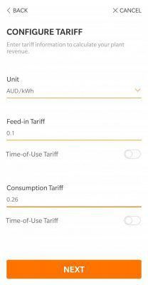 23. Định cấu hình biểu giá của bạn. Đơn vị là VND/ kWh. Biểu thuế đầu vào và Biểu giá tiêu dùng đến từ hóa đơn tiền điện của bạn. Chúng có thể được cập nhật sau, vì vậy nếu bạn muốn nhập các số liệu trung bình là 1943 VND. KẾ TIẾP (next)