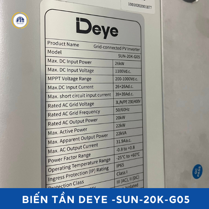 Giá bán biến tần Deye SUN-20K-G05 (20kW – 3 pha) đang cực tốt chỉ: 22.300.000 VNĐ. Giá dự án / đại lý sẽ tốt hơn – vui lòng liên hệ để nhận báo giá ưu đãi theo số lượng.