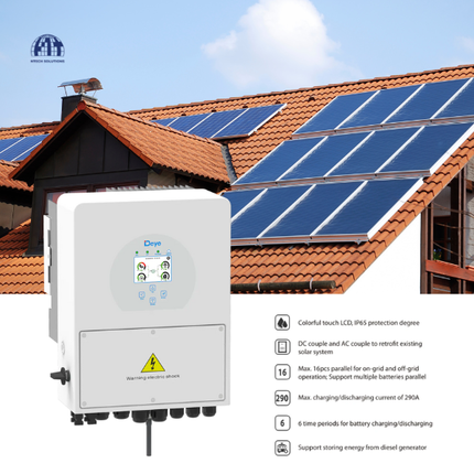 Deye 3k sun 3k sg04lp1 hoạt động thông minh và bền bỉ.Thiết kế khung kim loại và khả năng chống ẩm môi trường và chống nước, kết nối điều khiển iot qua chiếc smart phone hay máy tính của bạn. Máy hoạt động bền bỉ bảo hành chính hãng 5 năm hỗ trợ kỹ thuật trọn đời bởi NTECH.