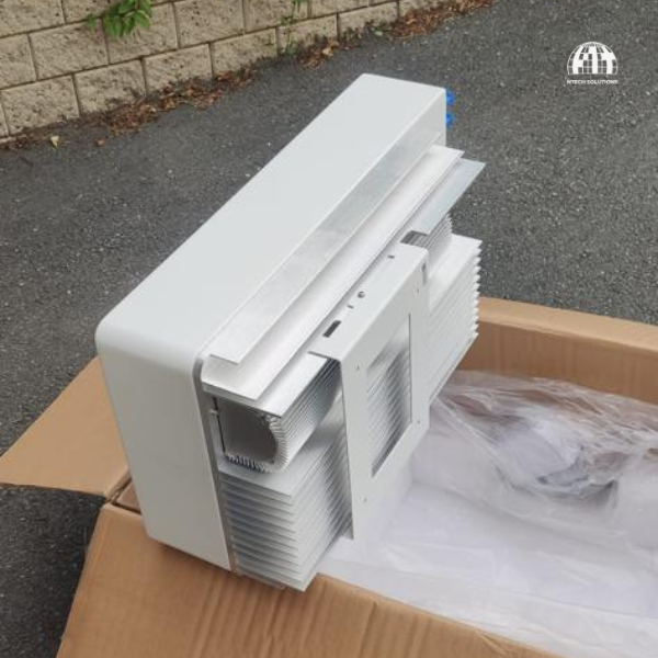 - Màu trắng trang nhã, vỏ nhôm cao cấp với góc cạnh vuông được bo nhẹ tạo nên vẻ ngoài sang trọng, phù hợp với mọi không gian lắp đặt.