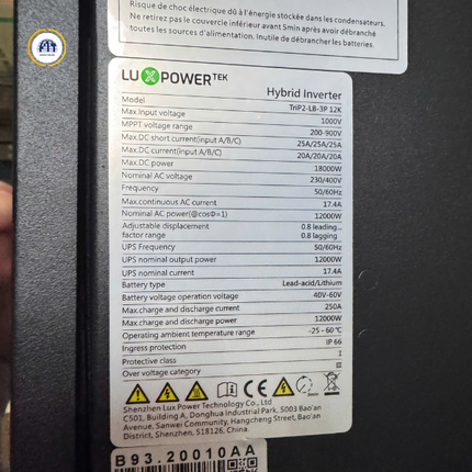 Với tiêu chuẩn quốc tế và chất lượng kiểm định nghiêm ngặt, inverter TriP2-LB-3P 12K Luxpower đảm bảo tuổi thọ cao, vận hành ổn định trong nhiều năm, phù hợp với điều kiện khí hậu nóng ẩm tại Việt Nam.
