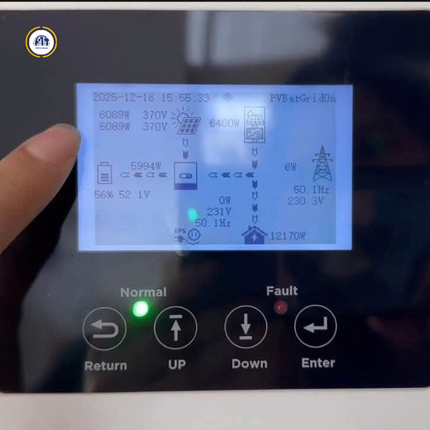 Nhờ đó, hệ thống điện mặt trời linh hoạt thay đổi cách sử dụng điện theo từng thời điểm. Với khả năng tự động chuyển sang chế độ off-grid khi điện lưới gặp sự cố, giúp duy trì nguồn điện cho tải mà không cần can thiệp thủ công. Hạn chế tối đa tình trạng gián đoạn điện. Đảm bảo các thiết bị quan trọng như chiếu sáng, mạng, camera, máy tính hoặc hệ thống điều khiển vẫn hoạt động ổn định. Điều này đặc biệt hữu ích cho các công trình yêu cầu nguồn điện liên tục