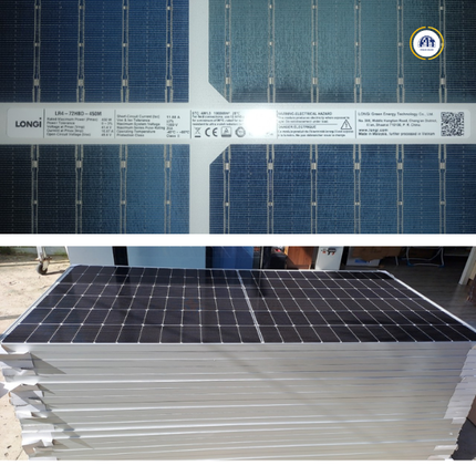 Ntechsolutions® là đơn vị nhập khẩu và phân phối trực tiếp longi 450w 2 mặt kính LR4-72HBD 450M. Longisolar đã là thương hiệu thuộc top đầu trên thế giới về sản xuất tấm pin năng lượng mặt trời. Pin longi 450 có công suất sạc lớn, đảm bảo tấm pin năng lượng mặt trời Longi có thể khai thác được nhiều năng lượng mặt trời hơn. Chi tiết xem tại bài viết bên dưới!