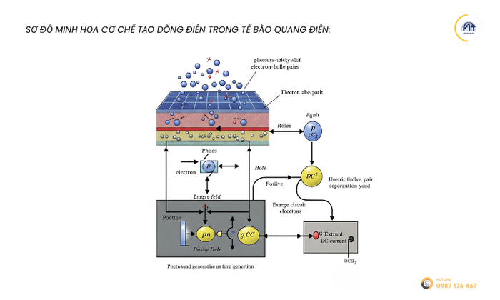 Dưới đây là sơ đồ minh họa cơ chế tạo dòng điện trong tế bào quang điện: