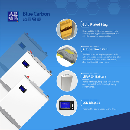 Blue Carbon là một nhà cung cấp hàng đầu trong ngành năng lượng mặt trời với hơn 20 năm kinh nghiệm. BCT đã có nhiều năm kinh nghiệm trong ngành năng lượng, bao gồm: đèn năng lượng mặt trời blue carbon, pin sắt lithium, inverter, bộ điều khiển sạc năng lượng mặt trời, bộ lưu điện và hàng loạt thiết bị năng lượng mặt trời cao cấp khác. Nên về phần ngoại hình lẩn tổng thể của bộ pin lithium này phải nói là rất đẹp. Thiết kế nhỏ gọn và đã được tối giản nên rất thuận tiện để di chuyển cũng như lắp đặt. Giảm đáng kể diện tích chiếm dụng không gian ngôi nhà của bạn. Kiểu dáng thiết kế tinh tế và hiện đại, mang lại nhiều tiện ích hơn cho người sử dụng.