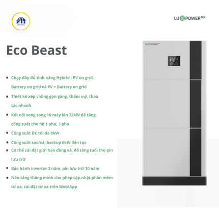 Hiện tại, Hina/Luxpower 5.12KW Beast-5 phiên bản mới 2025 đang được phân phối chính thức tại NTech Solutions. Chúng tôi là đơn vị chuyên cung cấp thiết bị năng lượng mặt trời uy tín tại Việt Nam. Cam kết với quý khách hàng: