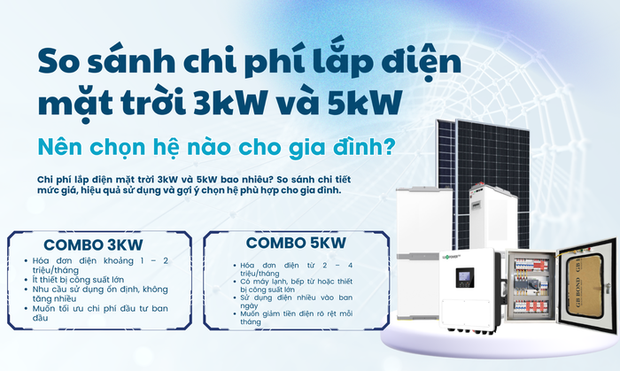 Chi phí lắp điện mặt trời 3kW và 5kW bao nhiêu? So sánh chi tiết mức giá, hiệu quả sử dụng và gợi ý chọn hệ phù hợp cho gia đình.