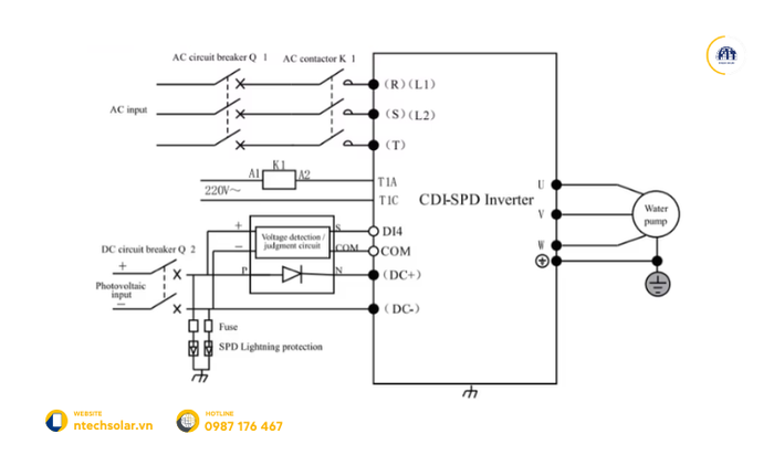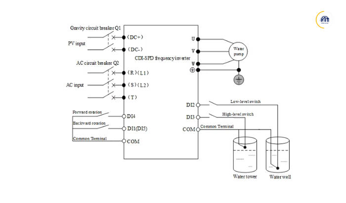 sơ đồi khối biến tần bơm nước năng lượng mặt trời Delixi để bạn tham khảo: