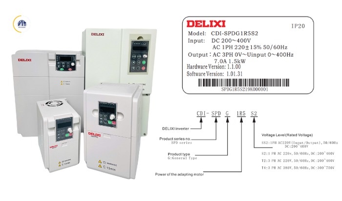 Các thông số cơ bản của biến tần Delixi thường được hiển thị trên nhãn sản phẩm. Xem hình bên dưới đây của Ntech Solutions để hiểu rõ hơn: