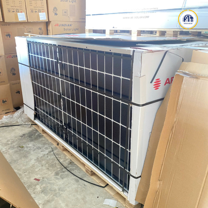 Tấm pin năng lượng mặt trời thương hiệu AE SOLAR công suất 580W - 2 mặt kính loại MONO (đơn tinh thể) N-TYPE (AE CMD-144BDS 580W) này. Sẽ giúp khách hàng tăng cường khả năng hấp thụ ánh sáng từ cả hai mặt, từ đó nâng cao hiệu suất chuyển hóa điện năng.