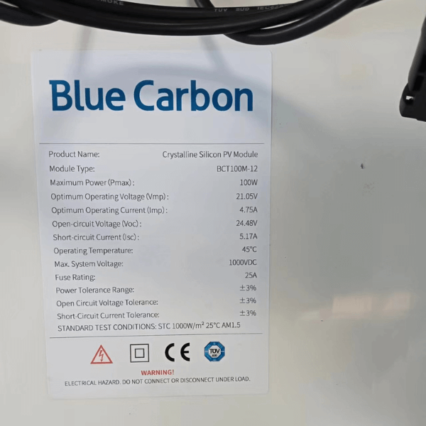 Tấm pin năng lượng mặt trời 100W là sản phẩm mới được công ty ntech solutions phân phối trên toàn quốc. Pin năng lượng mặt trời 12v 100w là sản phẩm mới có công suất thấp chỉ 100w. Nhưng bù lại được hãng blue carbon tích hợp công nghệ mono tiên tiến, được sản xuất trên dây chuyền hiện đại. Trước khi phân phối đến tay người tiêu dùng đã được trải qua các quá trình kiểm tra nghiêm ngặt từ hãng cũng như tại NTech Solutions. Đảm bảo các chứng chỉ về chất lượng và tiêu chuẩn của Châu Âu đem lại một tấm pin mặt trời phù hợp với thị trường Việt Nam.