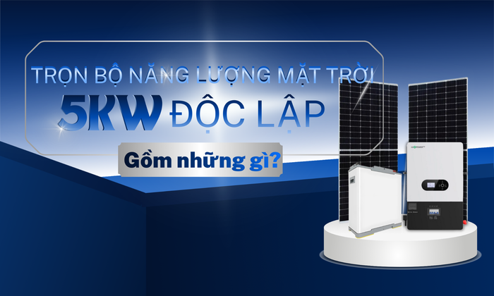 Trọn bộ năng lượng mặt trời độc lập 5kW gồm tấm pin, inverter, pin lưu trữ và phụ kiện. Xem chi tiết cấu hình và chi phí lắp đặt mới nhất.