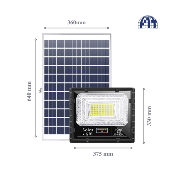 kích thước của đèn led năng lượng mặt trời 100W JD-8800l bao nhiêu?