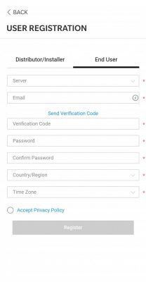 3. Tiếp theo, mở ứng dụng và bấm vào nút đăng ký (register). Sau đó bấm vào chữ người dùng chủ đầu tư (End User)
